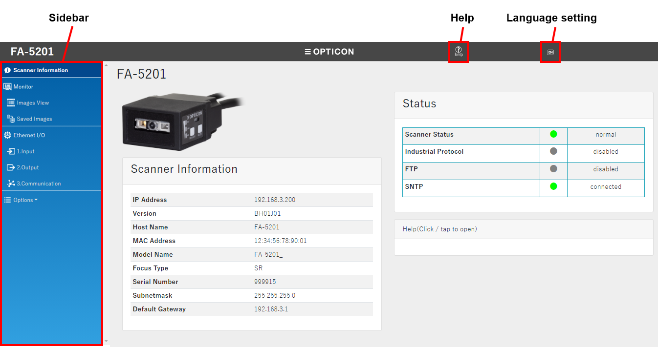 | SNTP | Connecting | The scanner is connected to the SNTP server normally. |